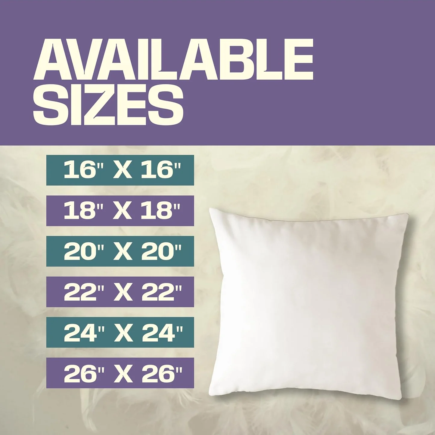 | Size | 16"x16", 18"x18", 20"x20", 22"x22", 24"x22" |