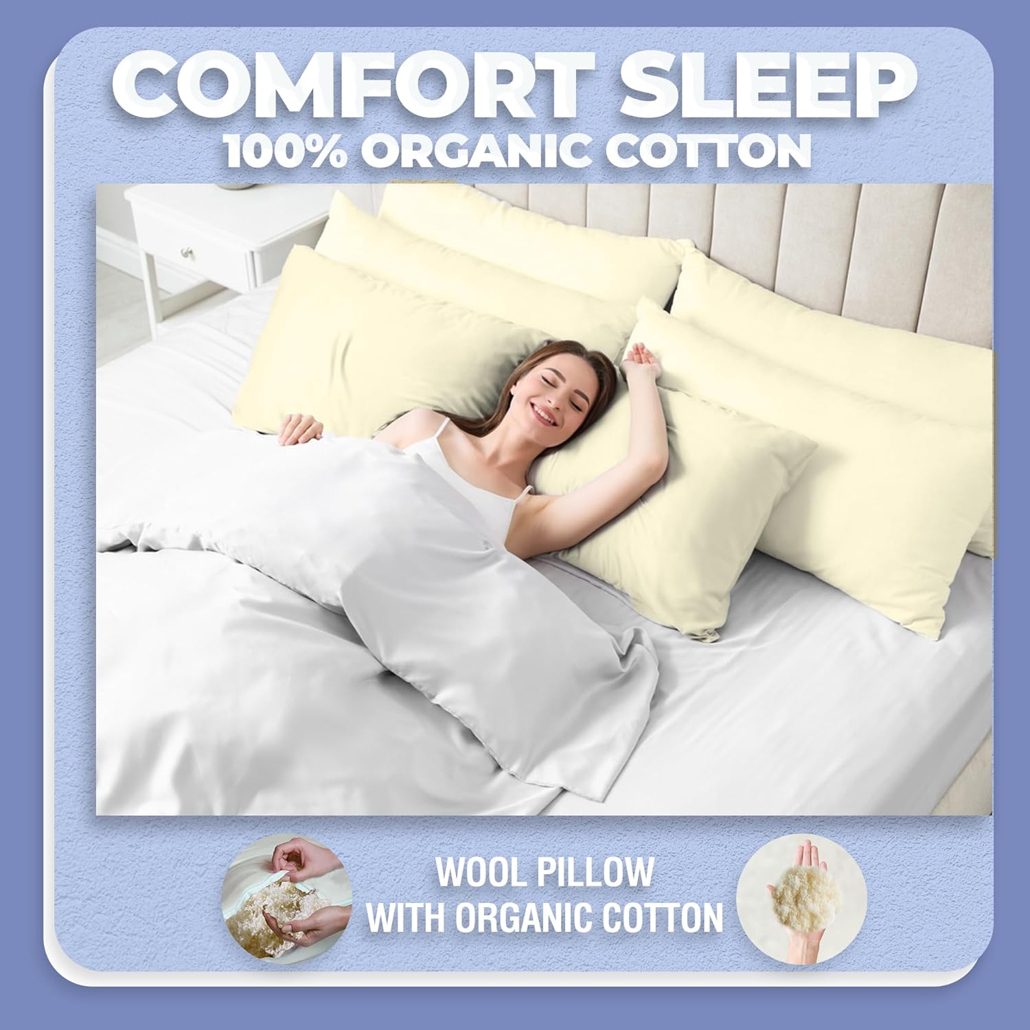 The Sleep&Snuggle wool filling pillow is designed for ultimate comfort and support. Made with natural wool filling, this breathable pillow adapts to your sleeping position, making it perfect for back and side sleepers. Its hotel-quality softness helps relieve neck and shoulder pain while offering anti-allergy protection for a cool, restful sleep every night.